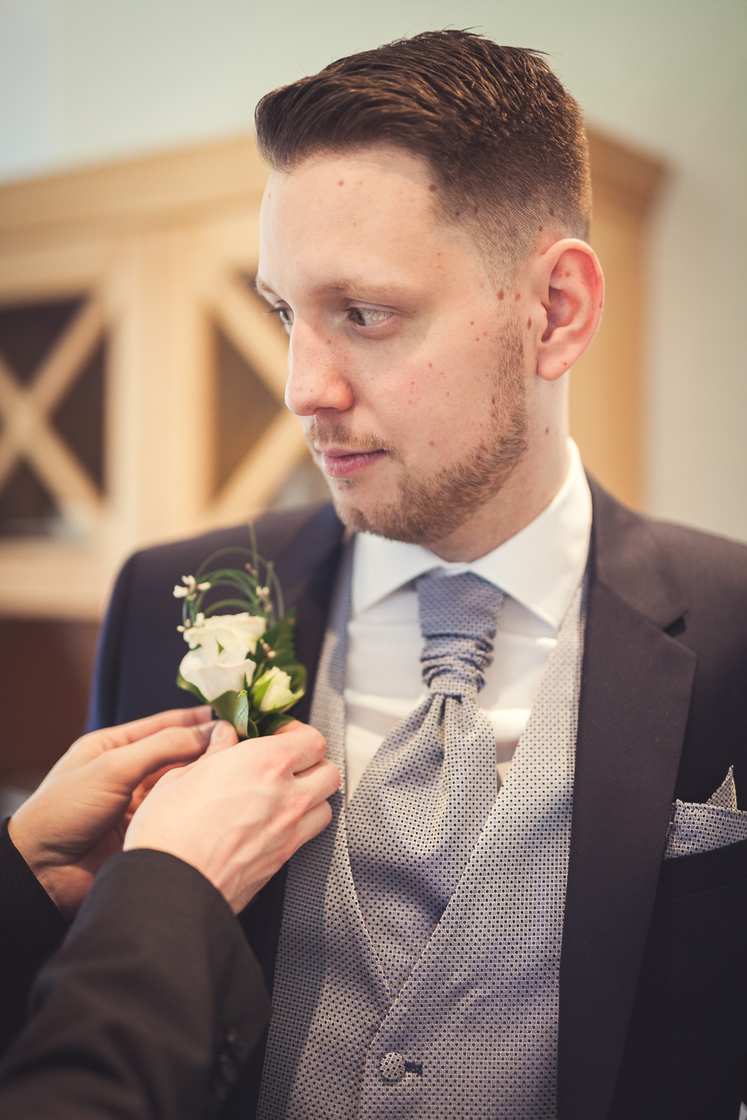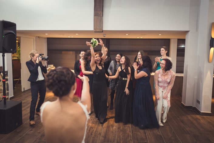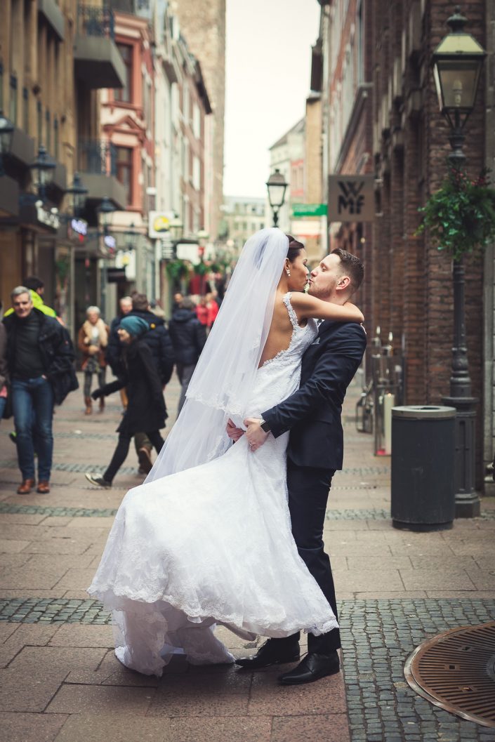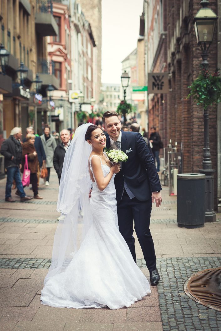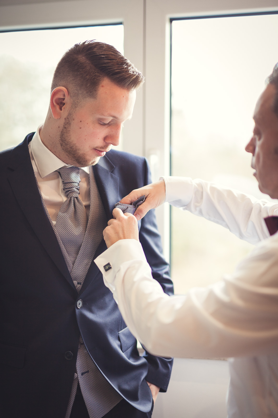 2017 starteten wir bereits im Februar mit unserer ersten Hochzeit. Begleitet haben wir Petra und Thomas bei ihrer kirchlichen Trauung im Aachener Dom und anschließender Feier auf Schloss Vaalsbroeck. Wir starteten schon am frühen Morgen bei Petra Zuhause. Dort wurde sie von einer Stylistin im Beisein ihrer Freunde und der Familie gestylt. Nach den ersten Getting-Ready Fotos von Petra fuhren wir ein paar Straßen weiter zu Thomas, der sich bei seinen Eltern in Schale warf. Von dort aus ging es für uns noch einmal rüber zur Braut, wo wir die letzen Detailaufnahmen vom Anziehen, dem Kleid und den Accessoires machten konnten.