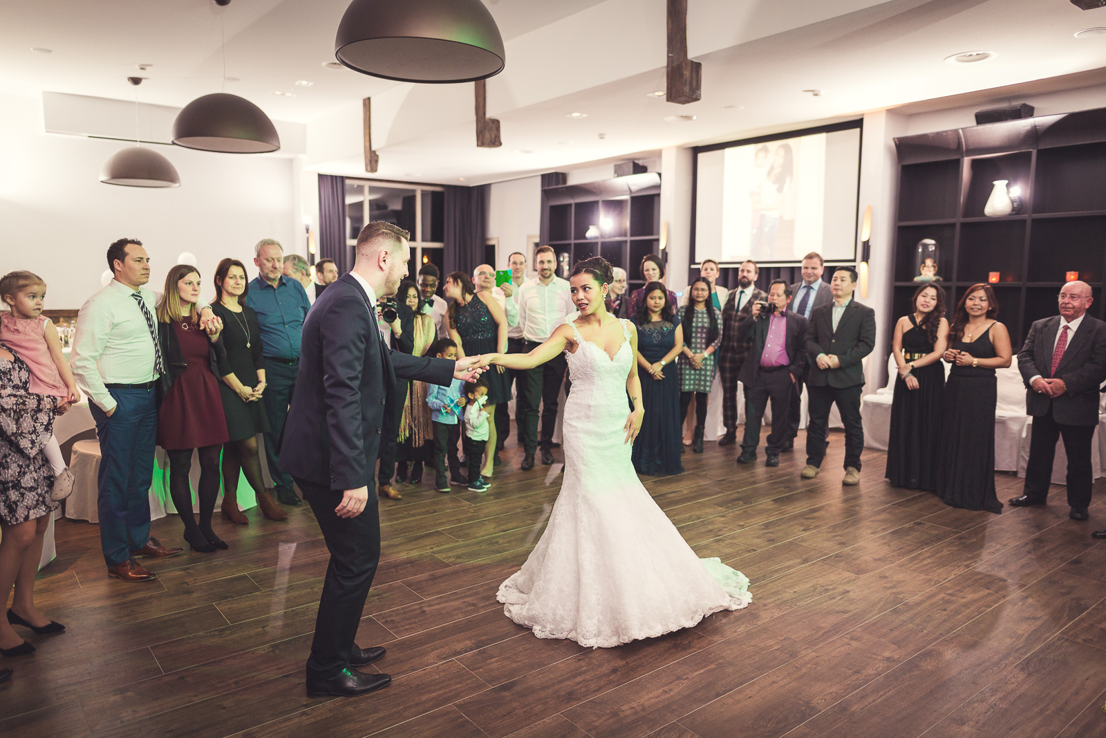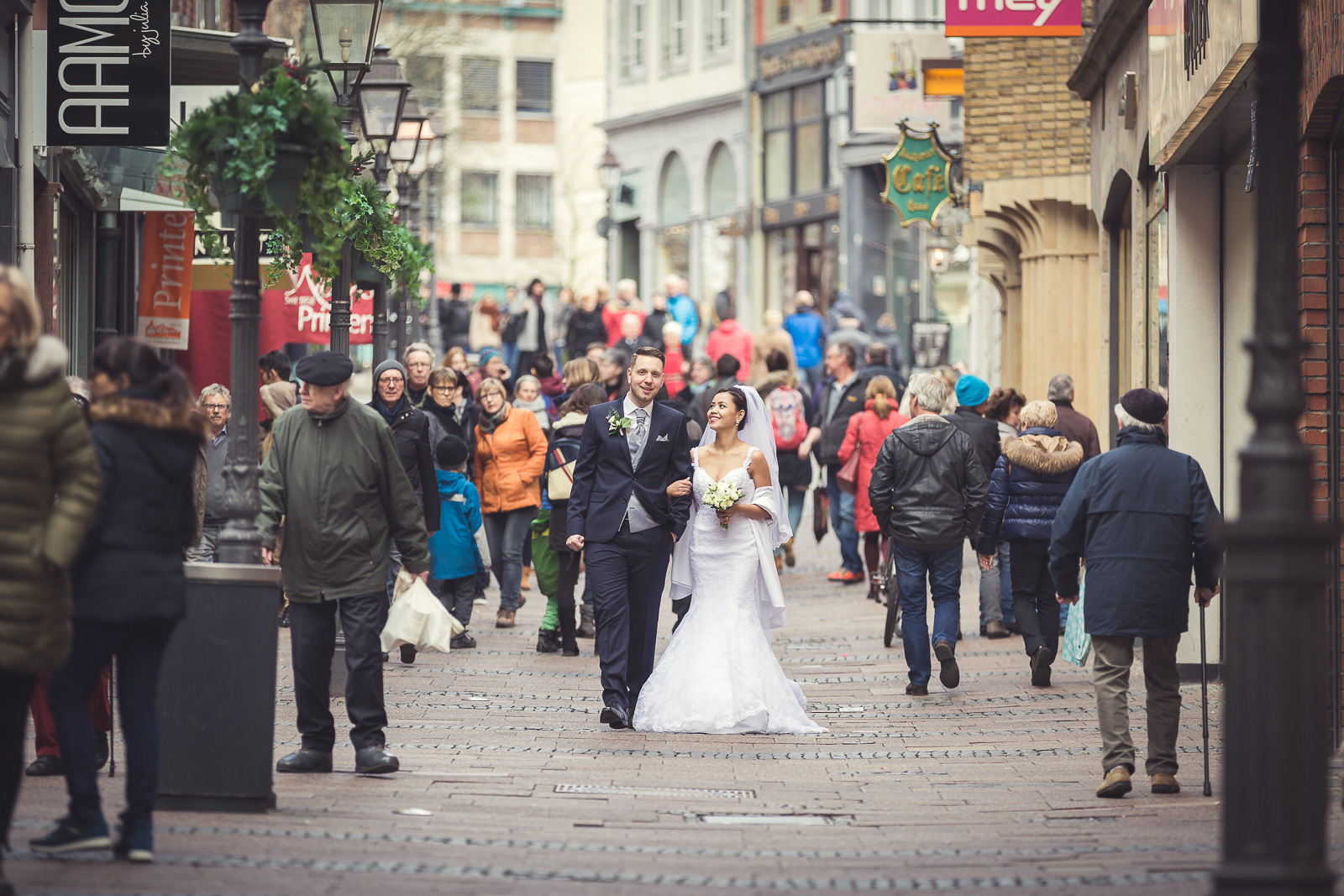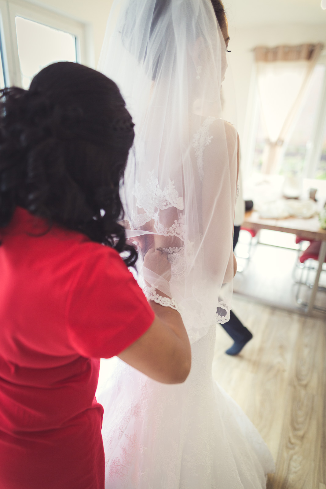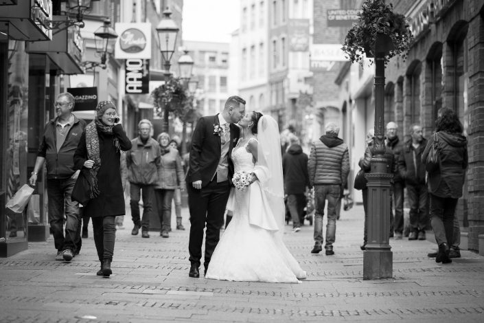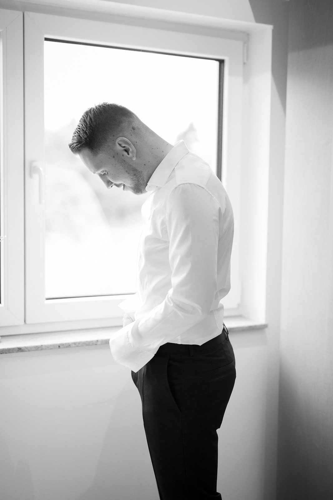 2017 starteten wir bereits im Februar mit unserer ersten Hochzeit. Begleitet haben wir Petra und Thomas bei ihrer kirchlichen Trauung im Aachener Dom und anschließender Feier auf Schloss Vaalsbroeck. Wir starteten schon am frühen Morgen bei Petra Zuhause. Dort wurde sie von einer Stylistin im Beisein ihrer Freunde und der Familie gestylt. Nach den ersten Getting-Ready Fotos von Petra fuhren wir ein paar Straßen weiter zu Thomas, der sich bei seinen Eltern in Schale warf. Von dort aus ging es für uns noch einmal rüber zur Braut, wo wir die letzen Detailaufnahmen vom Anziehen, dem Kleid und den Accessoires machten konnten.
