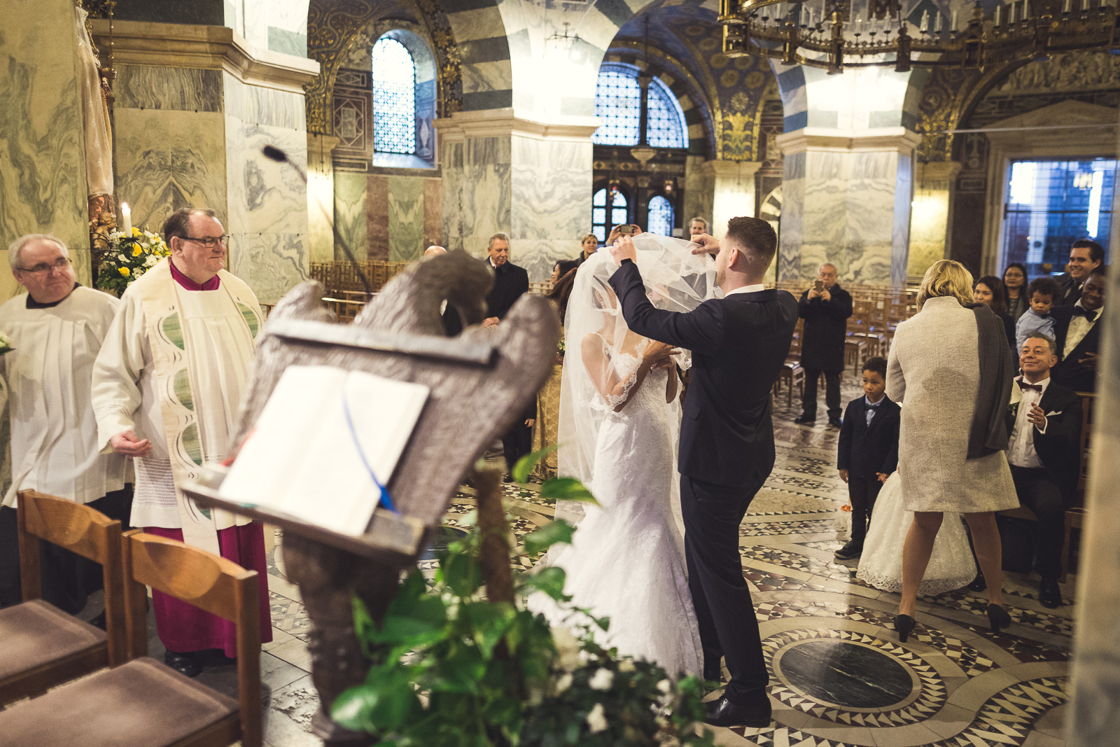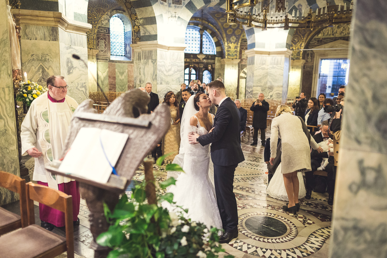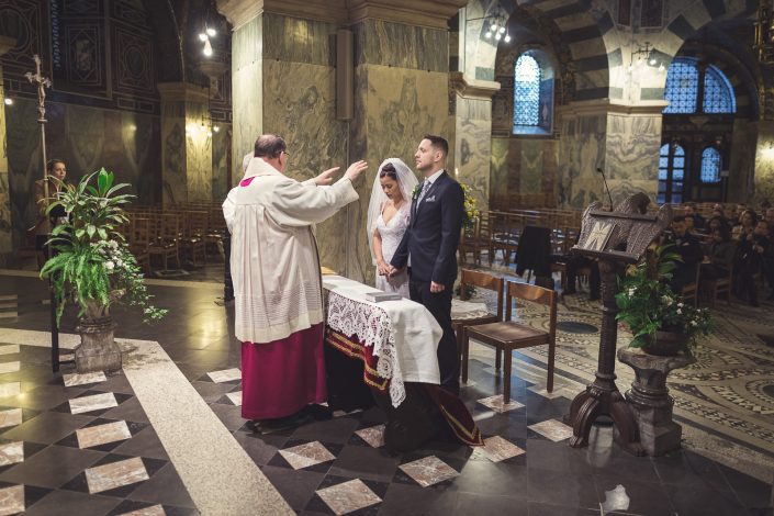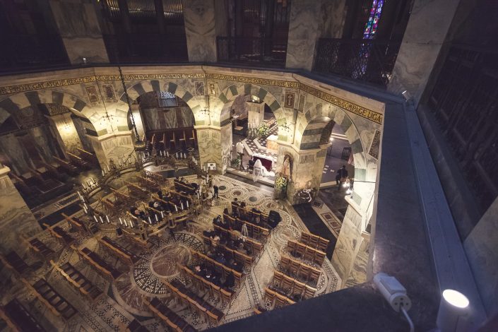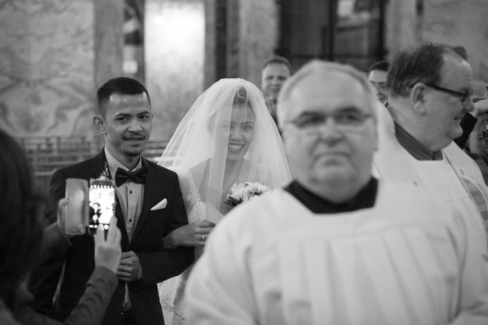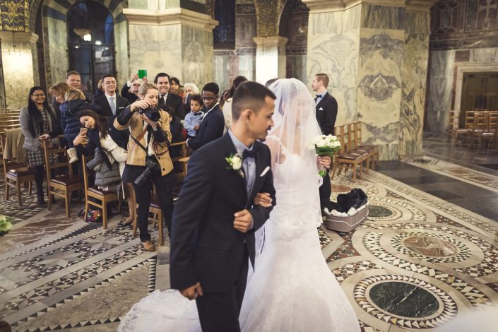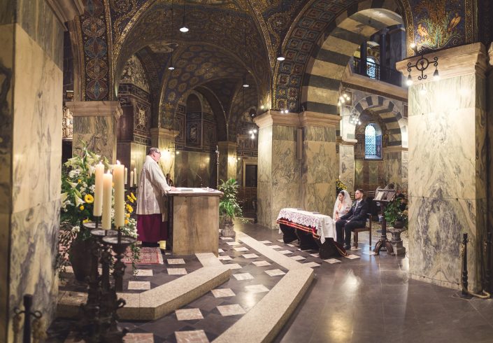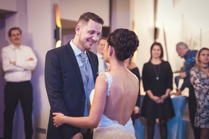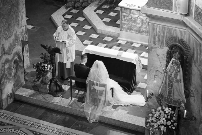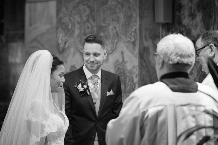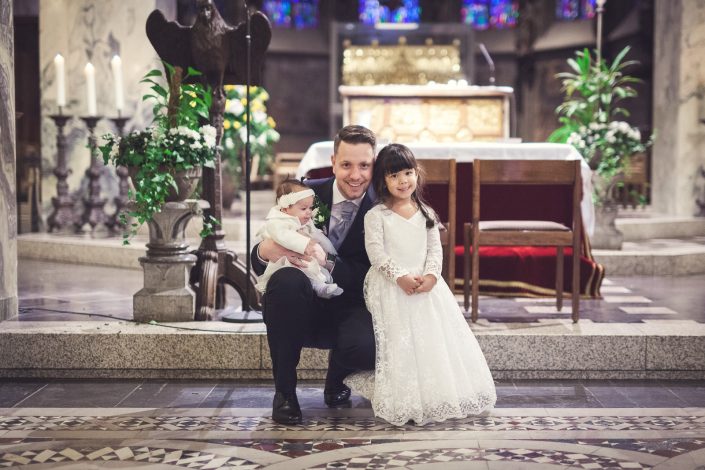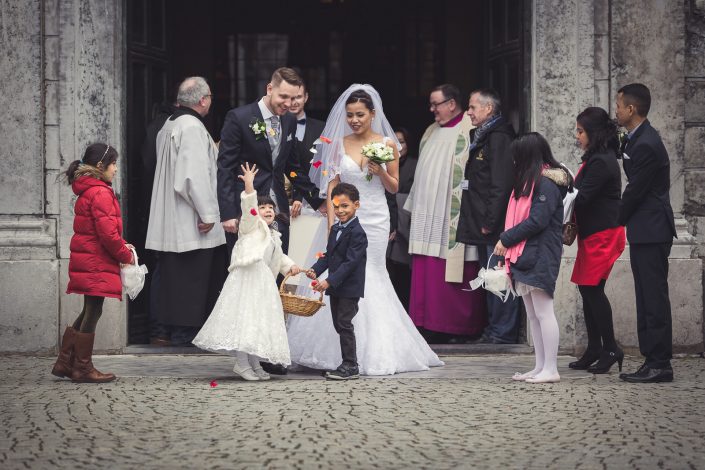 Petra und Thomas haben sich für eine wirklich sehr beeindruckende Kirche entschieden. Der Aachener Dom sollte es für diesen unvergesslichen Moment werden. Empfangen wurde die Braut von ihrem Mann und den super süßen Kindern am Altar. Die Trauung der Beiden war sehr rührend und wunderschön mit anzusehen. Natürlich fehlten beim Auszug der Beiden nicht die Blumenkinder.