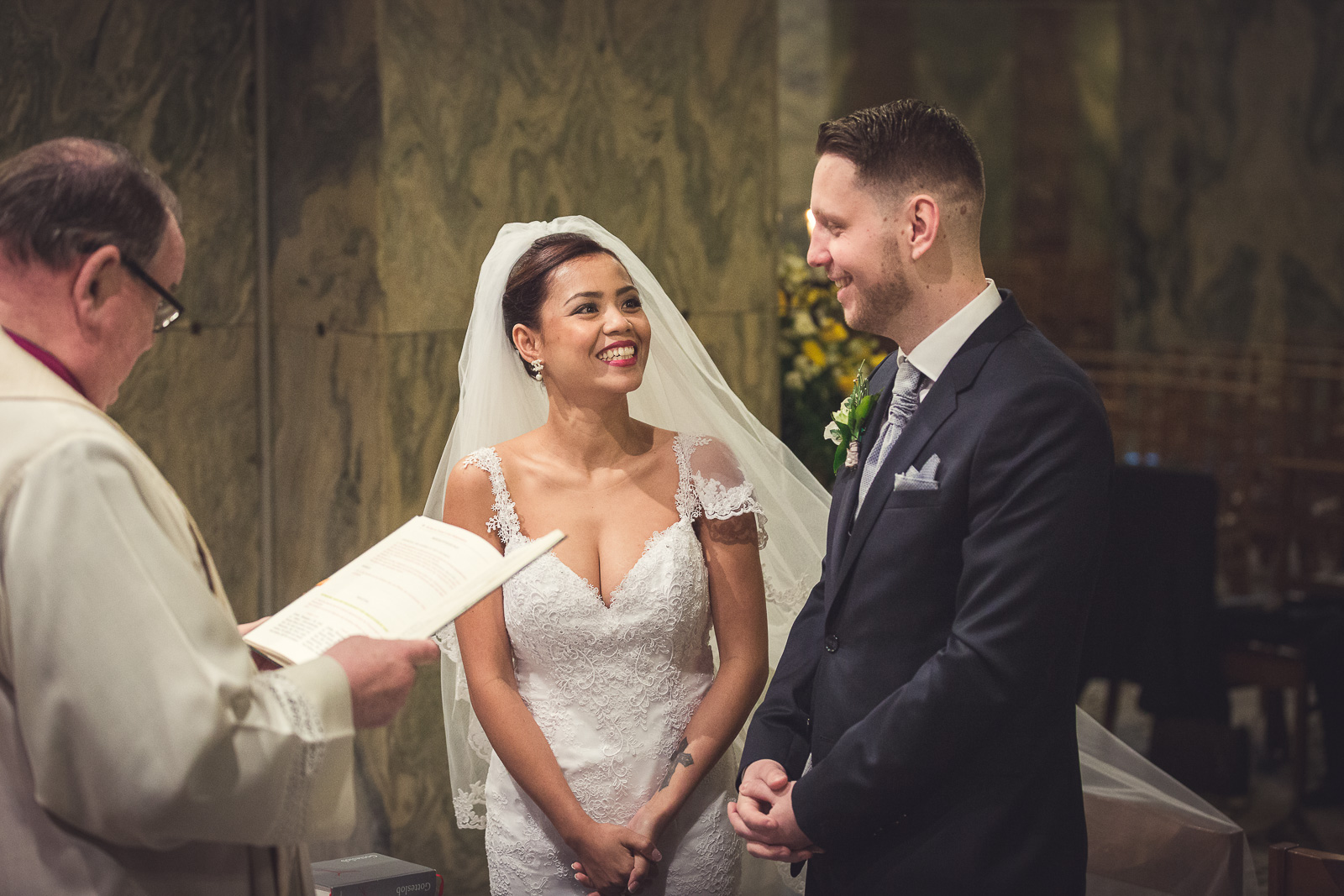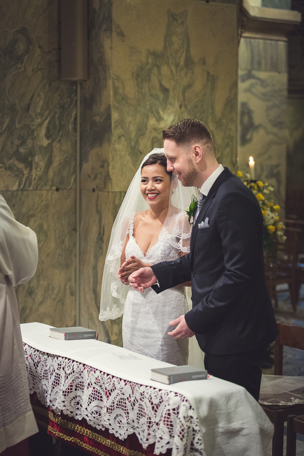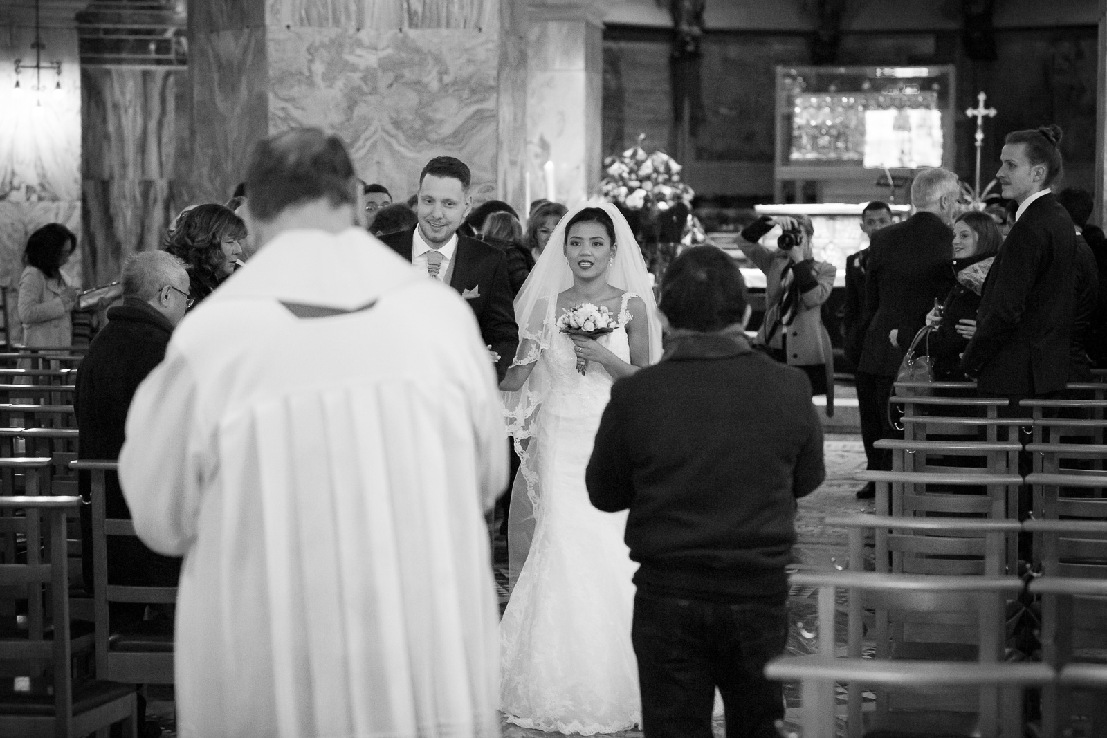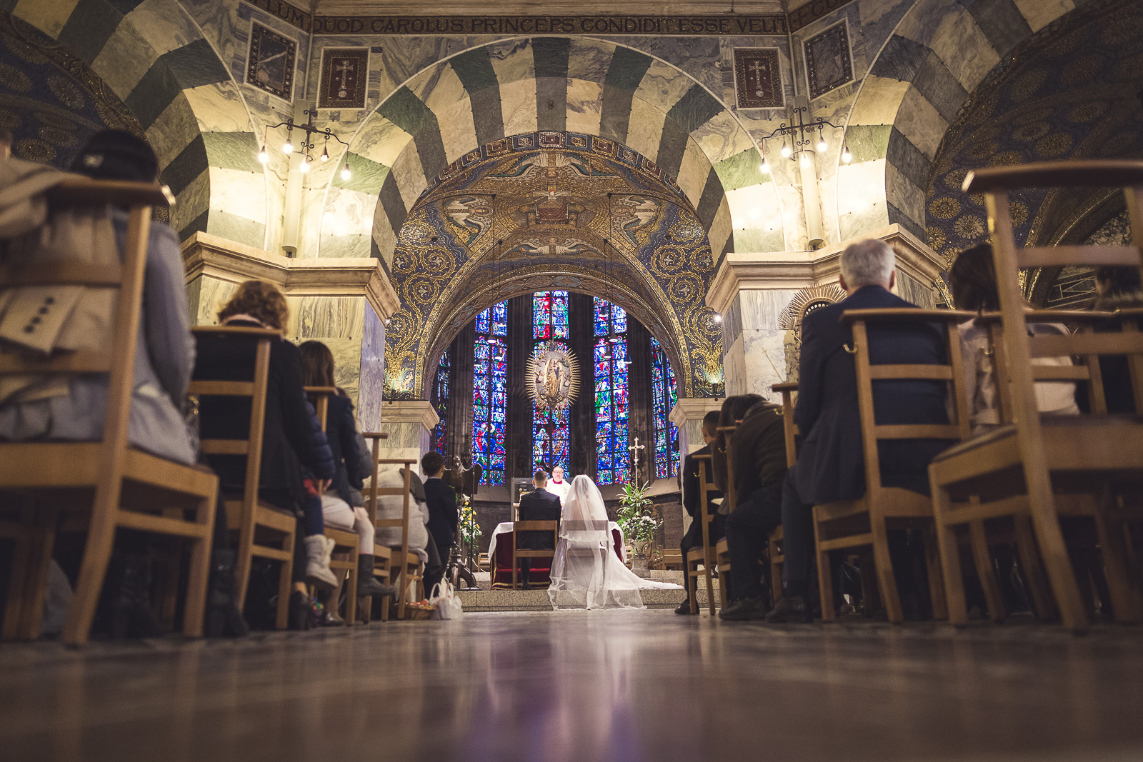 Petra und Thomas haben sich für eine wirklich sehr beeindruckende Kirche entschieden. Der Aachener Dom sollte es für diesen unvergesslichen Moment werden. Empfangen wurde die Braut von ihrem Mann und den super süßen Kindern am Altar. Die Trauung der Beiden war sehr rührend und wunderschön mit anzusehen. Natürlich fehlten beim Auszug der Beiden nicht die Blumenkinder.