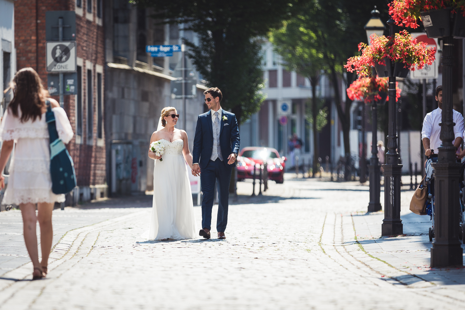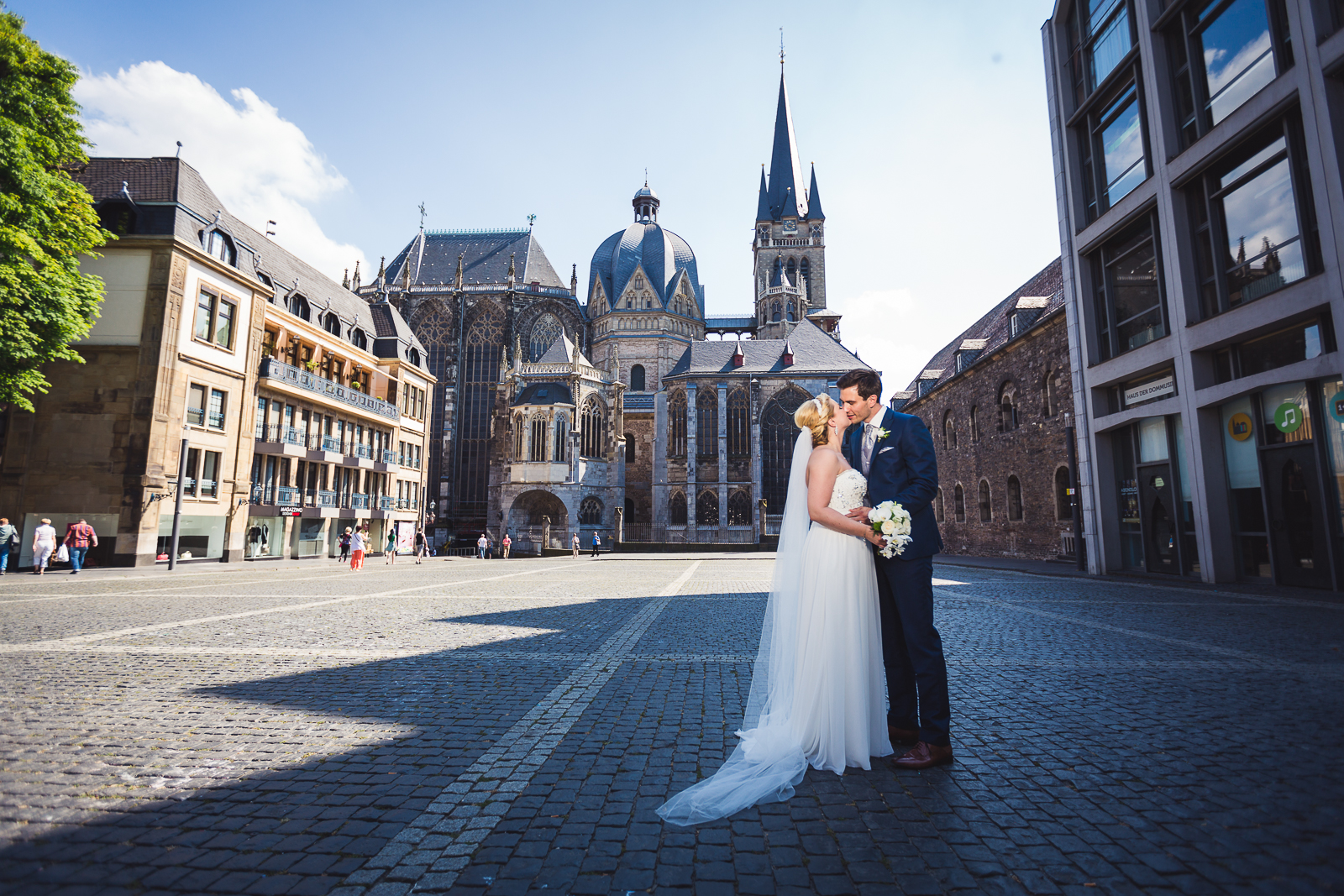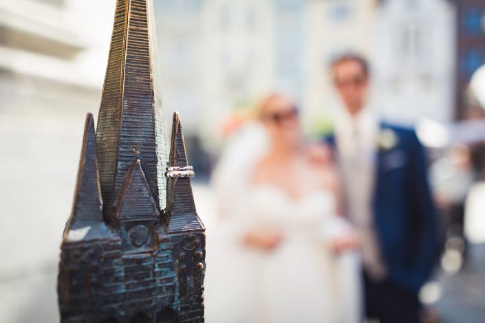 Die kirchliche Trauung fand in der Annakirche statt, die Maren am Arm ihres Vaters betrat und dort ihren auf sie wartenden Bräutigam traf. Die Trauung der Beiden war sehr persönlich und es floss das eine oder andere Tränchen. Die Tränen waren jedoch schnell getrocknet als es für die Feierlichkeiten ins Charles in Aachen ging. Die Familien und Freunde der Beiden hatten ein großartiges Programm auf die Beine gestellt und es wurde wild gefeiert.