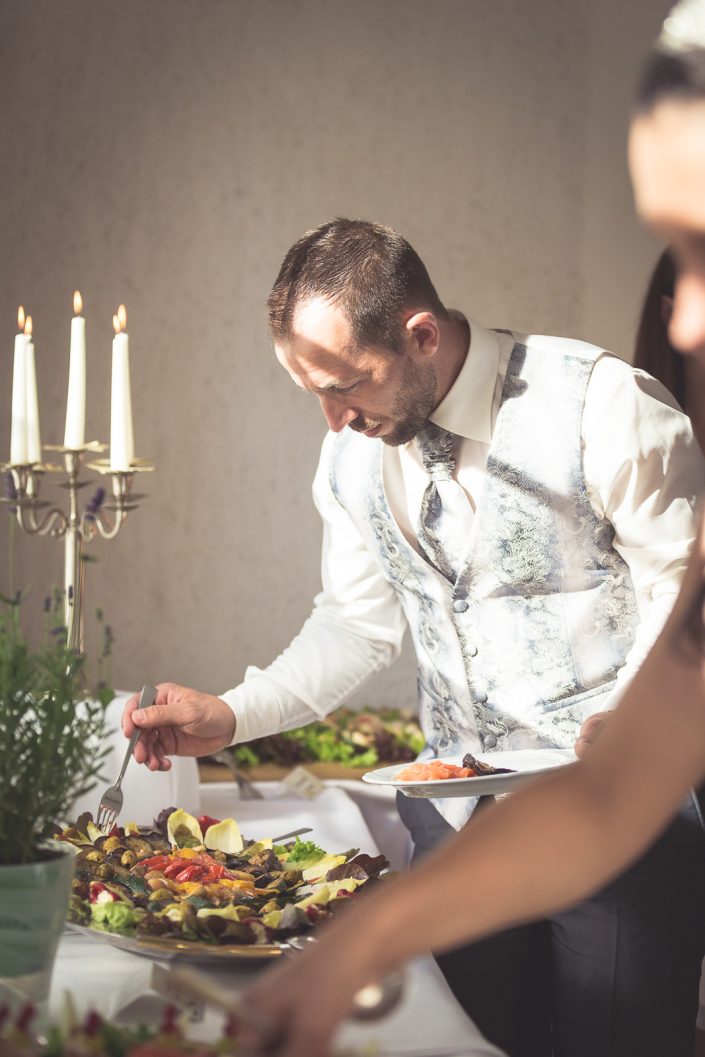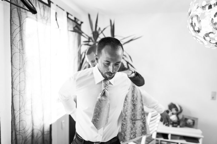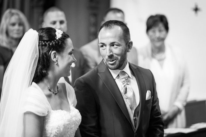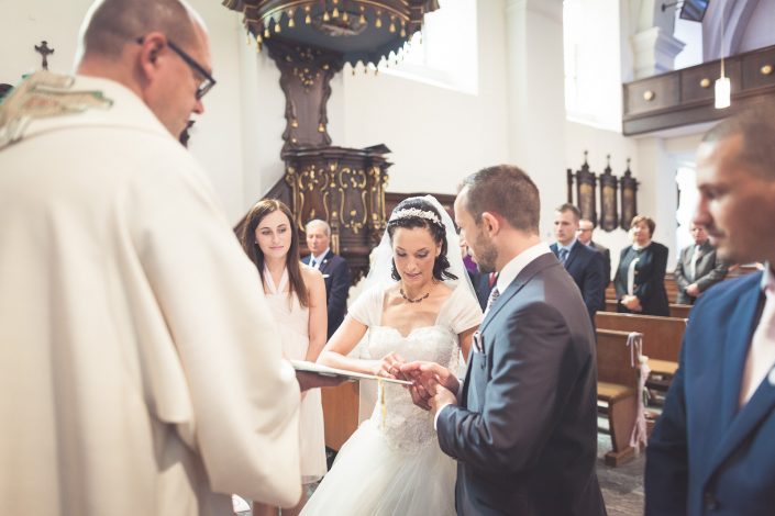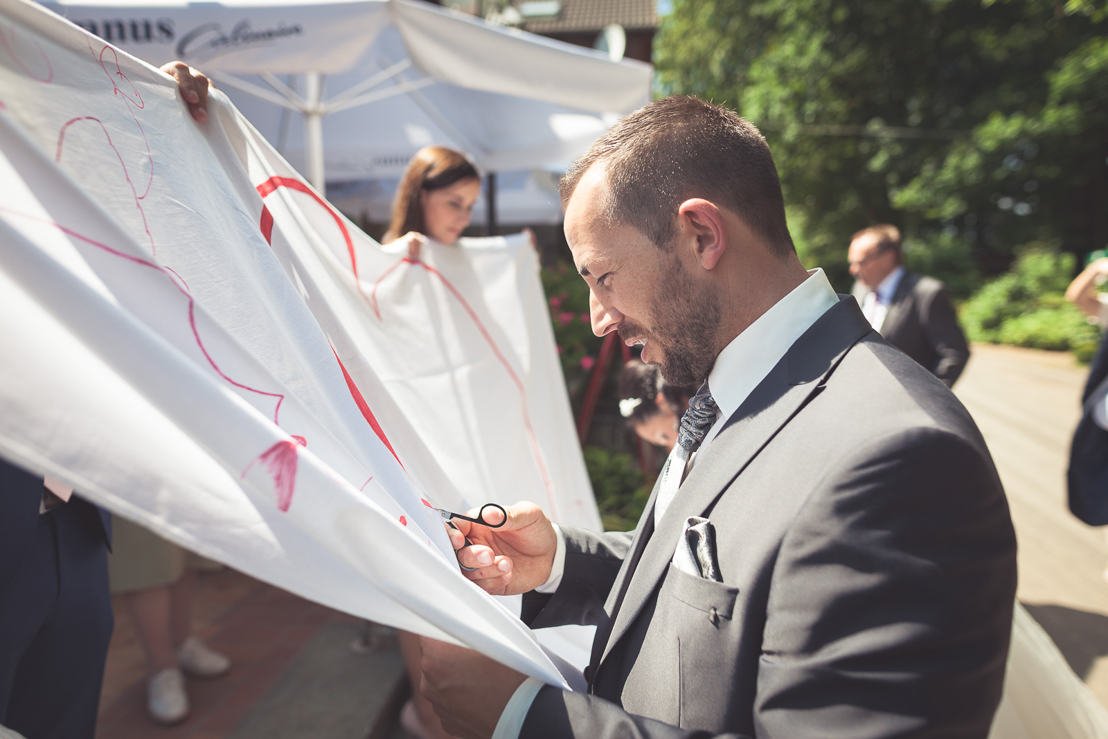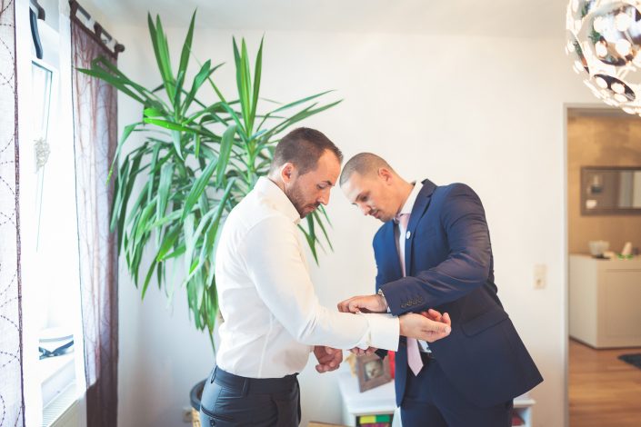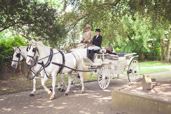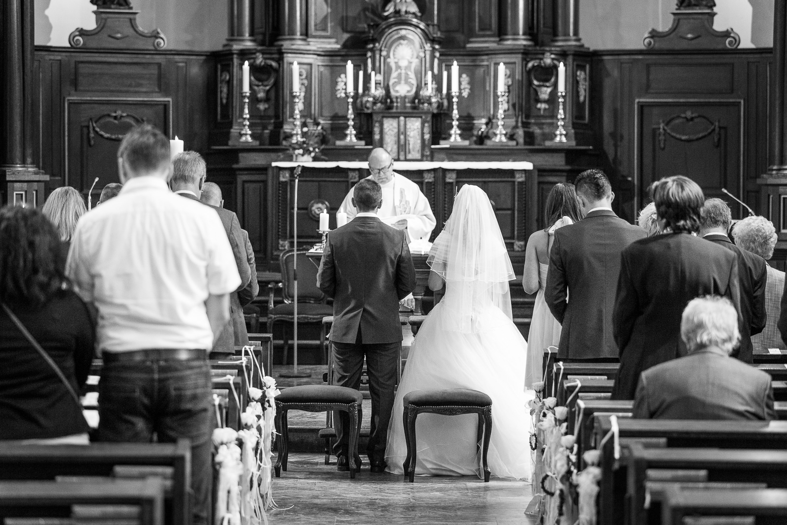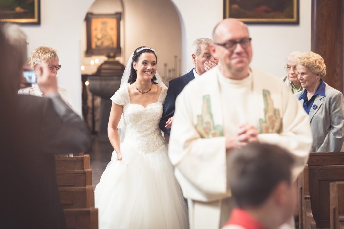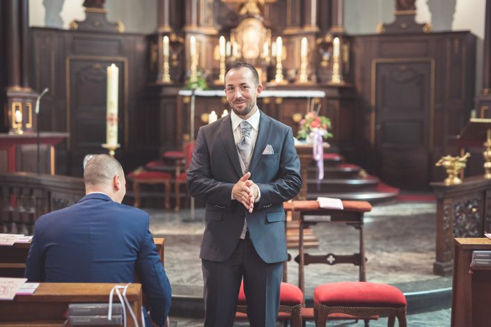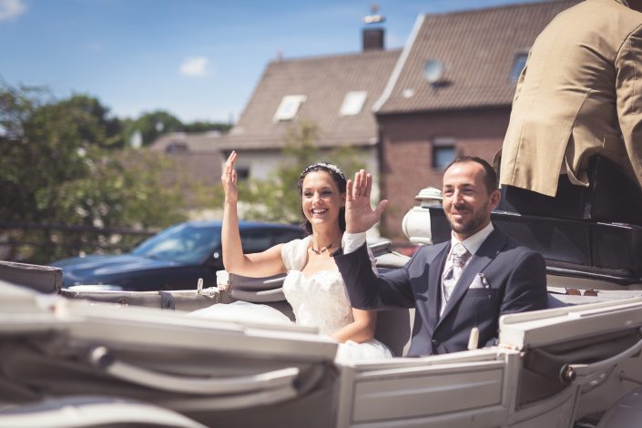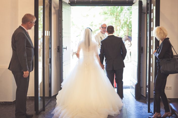Nach der standesamtlichen Trauung folgte einen Tag später die kirchliche Hochzeit von Mandy und Marcel in Herzogenrath. Mandy wurde in ihrem Elternhaus vorbereitet :). Schon ziemlich praktisch wenn die eigene Mutter einen Friseursalon besitzt und sich dieser im gleichen Haus befindet. Bei Marcel schauten wir zum Frühstück vorbei, der ganz entspannt am Tisch mit seinem Trauzeugen saß, ein Bierchen schlürfte und quatschte. Wie man bereits an den Bildern von der standesamtlichen Trauung sehen konnte, spielen Tiere eine große Rolle in dem Leben der Beiden. Wie kann es also nicht anders sein, haben die Beiden natürlich wunderschöne Katzen. Im Anschluss an das Getting Ready der Beiden fand die kirchliche Trauung in der Kirche Sankt Willibrord in Herzogenrath statt. Vorgefahren wurde die Braut mit ihrem Vater in einer traumhaften weißen Kutsche.