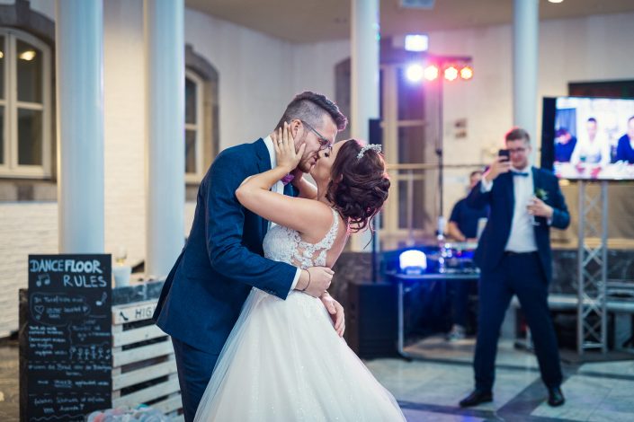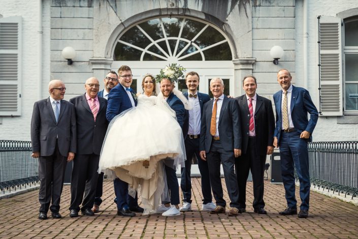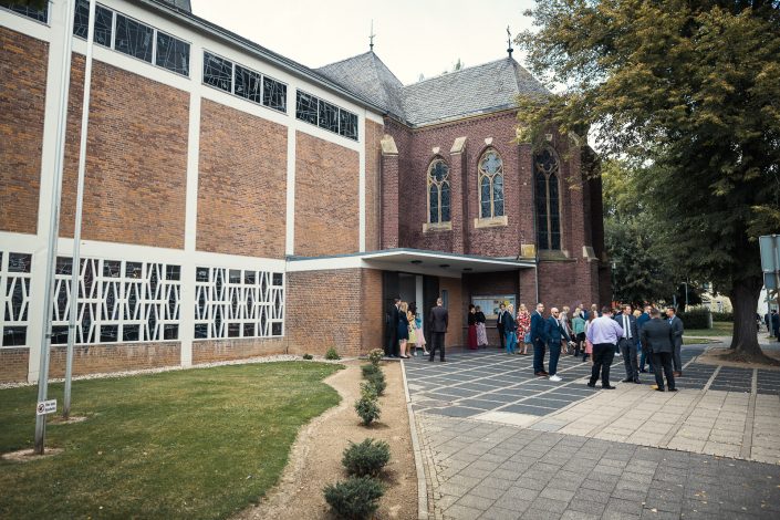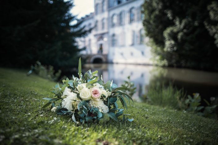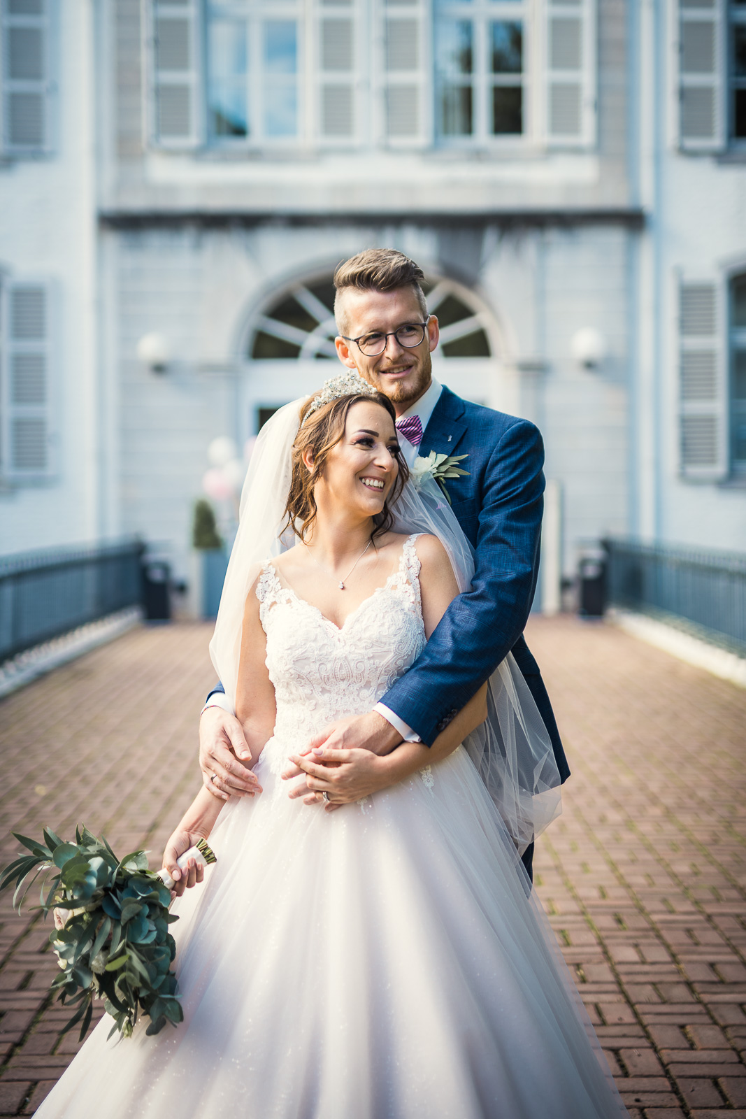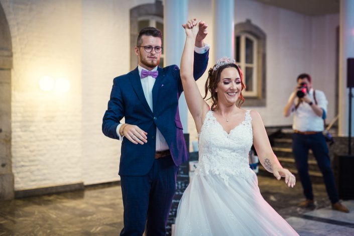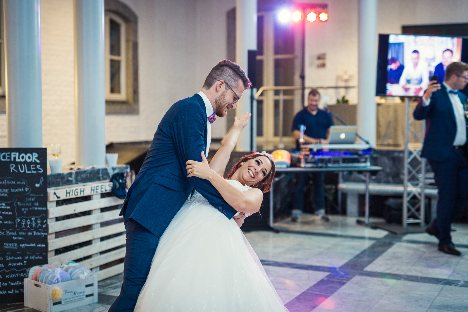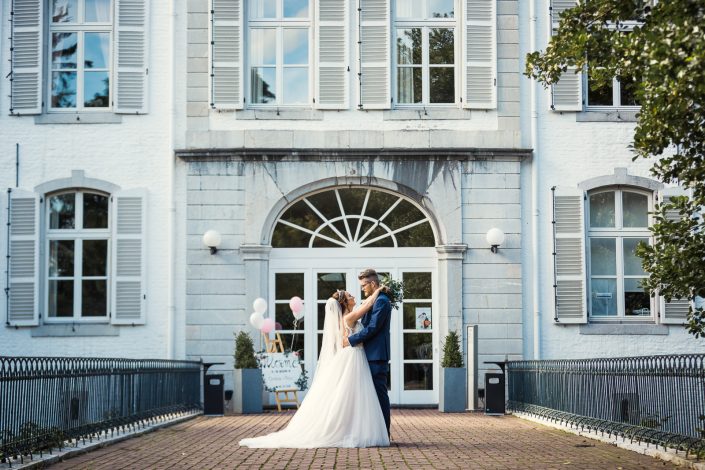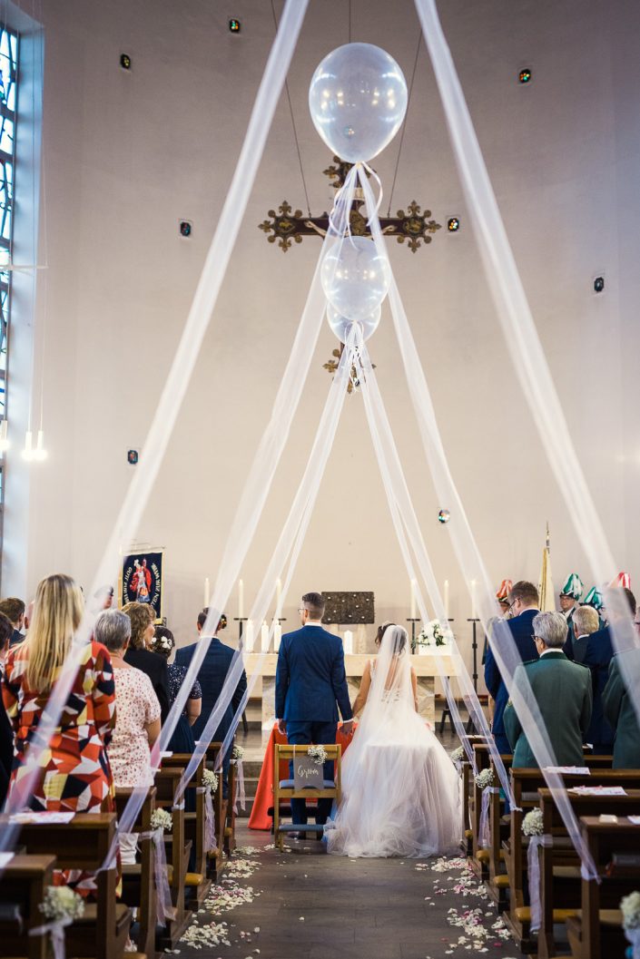 Geheiratet wurde in der Kirche Sankt Lambertus in Hückelhoven, die liebevoll mit einem Luftballon-Spalier geschmückt war. Es war ein traumhafter Anblick für den Bräutigam, die Gäste und natürlich uns :), als die Braut durch dieses Spalier zog. Im Anschluss ging es für uns ins Schloss Rahe, wo das Shooting und die anschließende Feier stattfanden. Auch wenn das Gelände des Schlosses sehr gepflegt ist, findet man doch ein paar Ecken die ein bisschen wilder sind, die sich perfekt für ein Shooting anbieten. Wir lieben es natürliche Bilder zu machen und Momente einzufangen und daher sind uns Shooting-Location die nicht das perfekte Gelände bieten am liebsten. Die Party ging bis spät in die Nacht und brachte so einige Überraschung, wie z.B. den Auftritt von Mike Leon Grosch, mit sich. Es war eine perfekte Party mit vielen stimmungsvollen Moment.