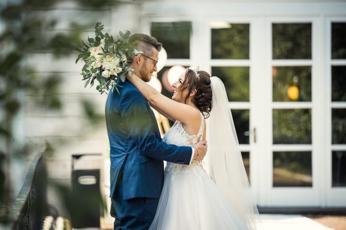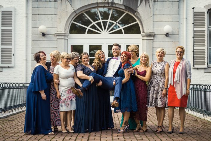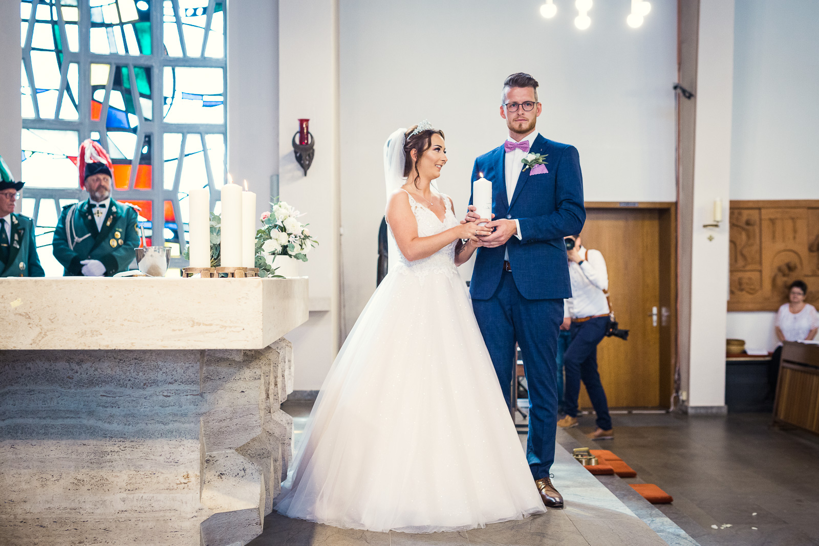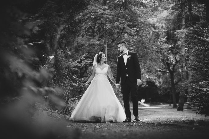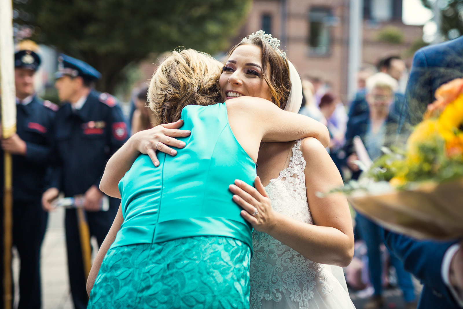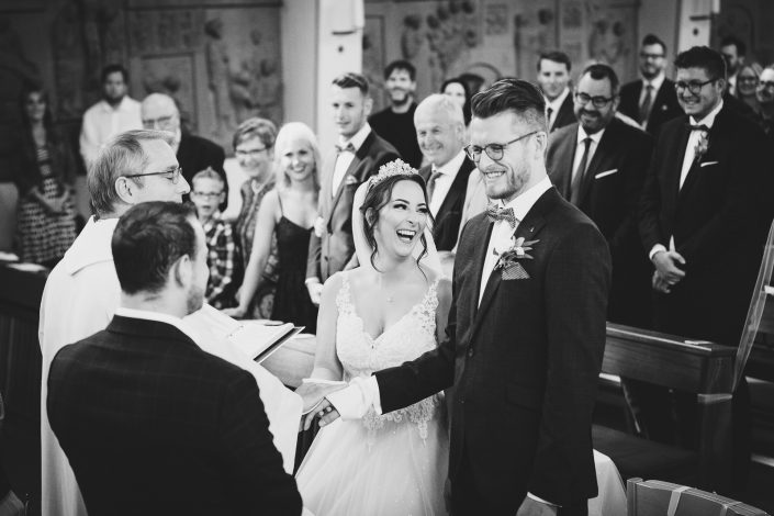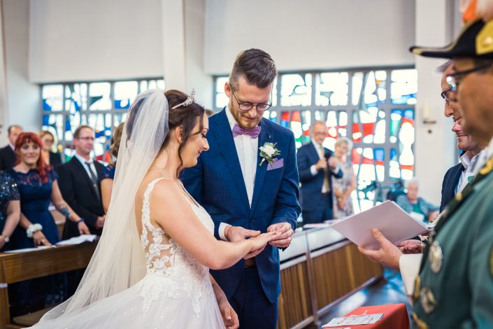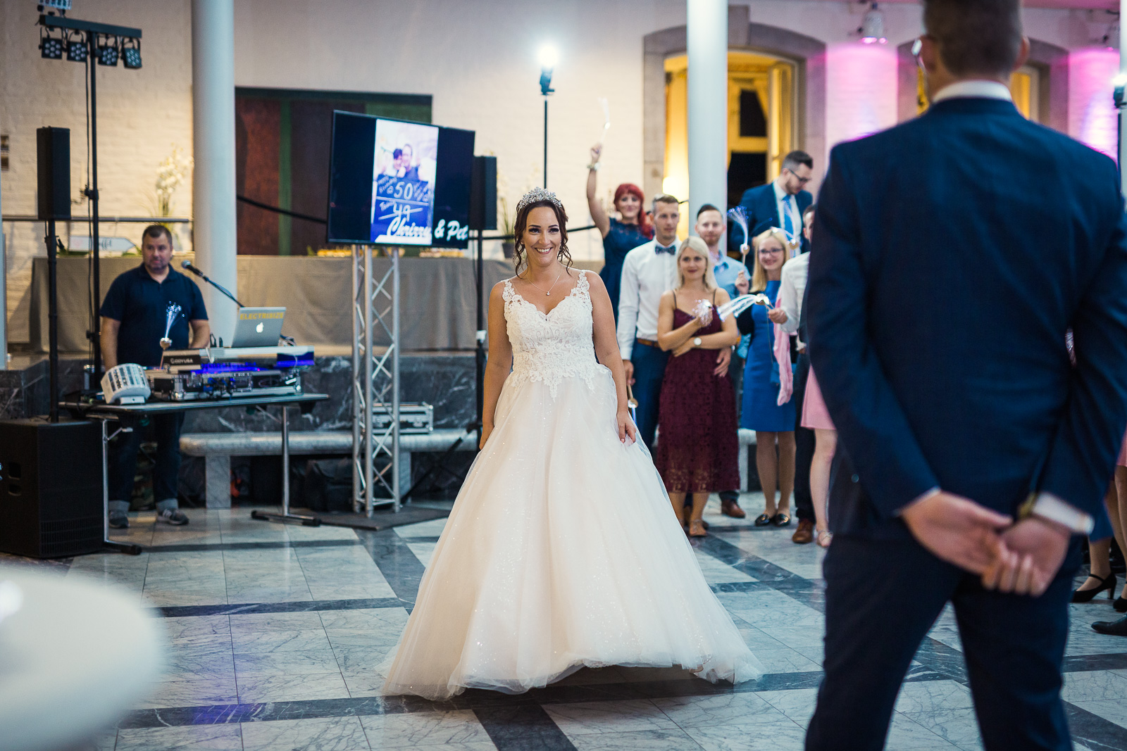 Geheiratet wurde in der Kirche Sankt Lambertus in Hückelhoven, die liebevoll mit einem Luftballon-Spalier geschmückt war. Es war ein traumhafter Anblick für den Bräutigam, die Gäste und natürlich uns :), als die Braut durch dieses Spalier zog. Im Anschluss ging es für uns ins Schloss Rahe, wo das Shooting und die anschließende Feier stattfanden. Auch wenn das Gelände des Schlosses sehr gepflegt ist, findet man doch ein paar Ecken die ein bisschen wilder sind, die sich perfekt für ein Shooting anbieten. Wir lieben es natürliche Bilder zu machen und Momente einzufangen und daher sind uns Shooting-Location die nicht das perfekte Gelände bieten am liebsten. Die Party ging bis spät in die Nacht und brachte so einige Überraschung, wie z.B. den Auftritt von Mike Leon Grosch, mit sich. Es war eine perfekte Party mit vielen stimmungsvollen Moment.