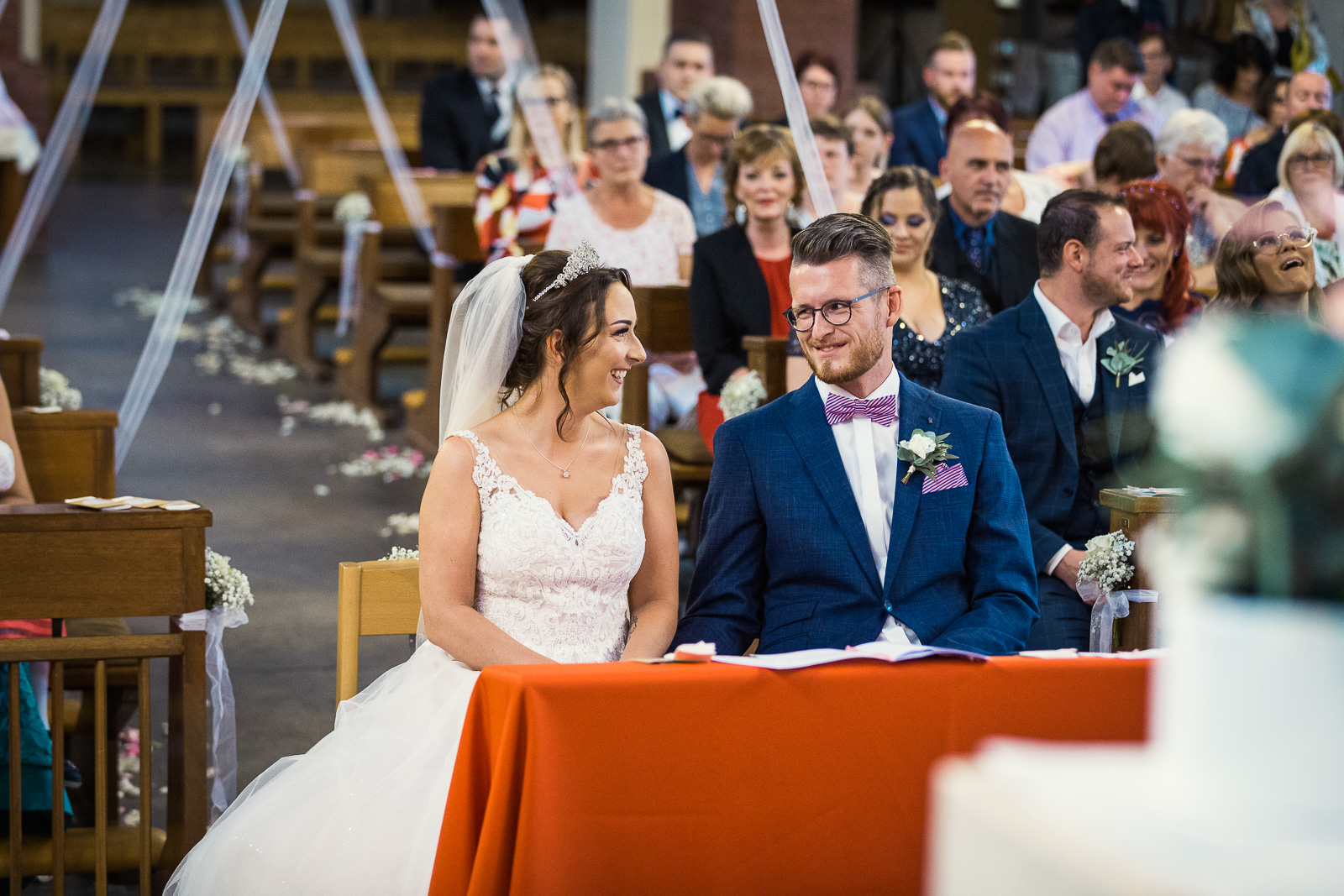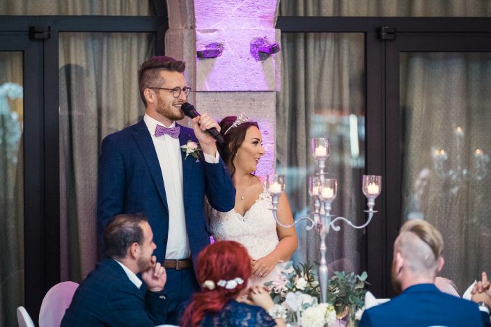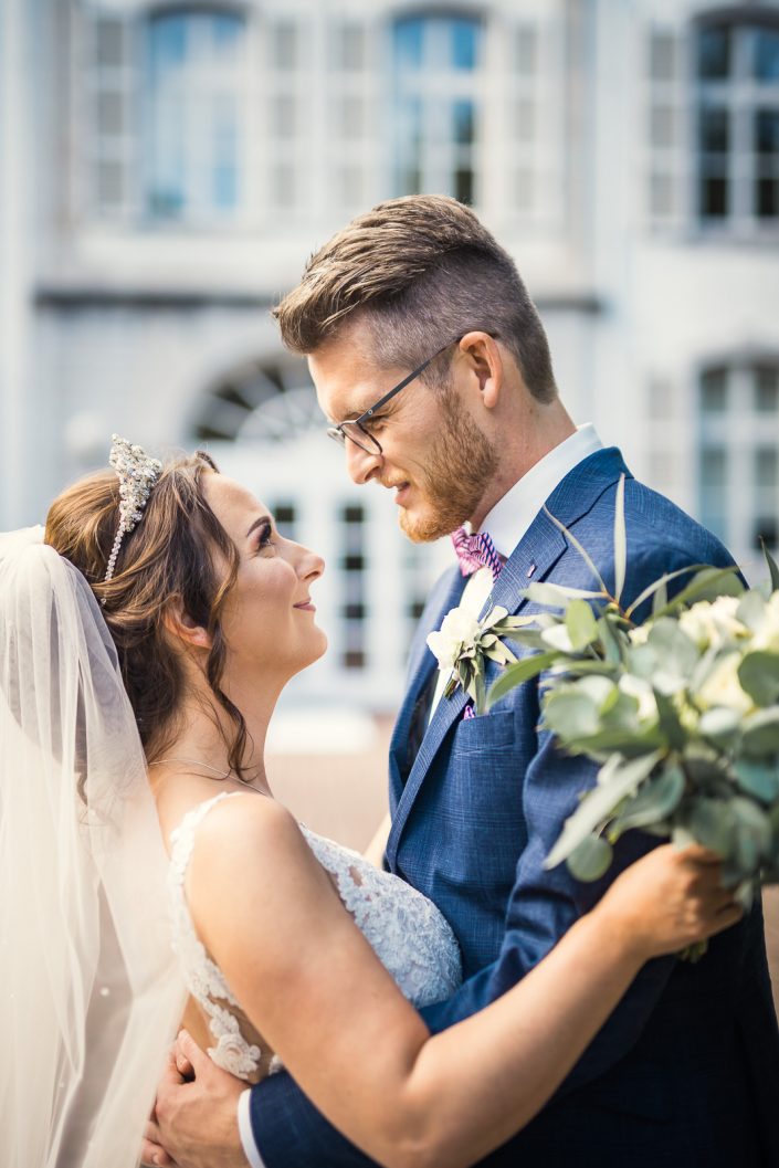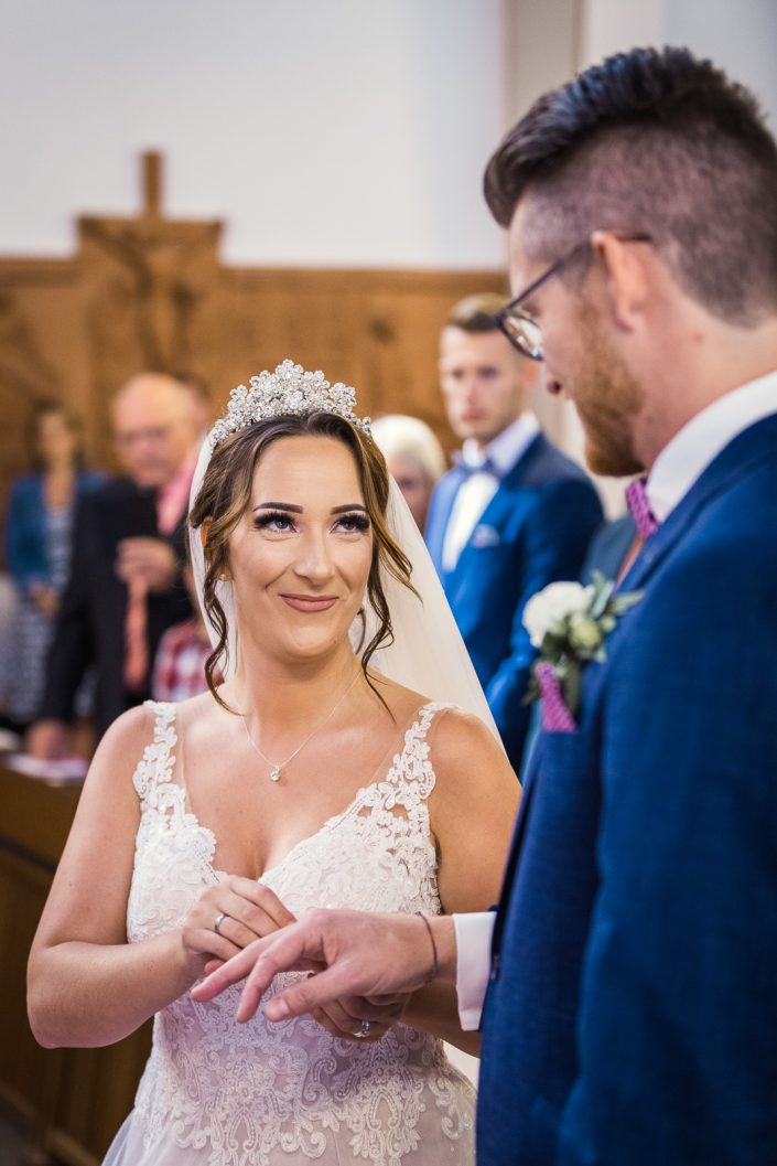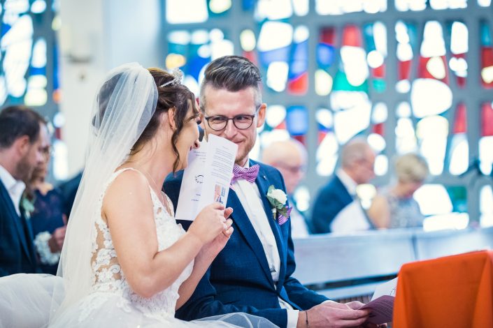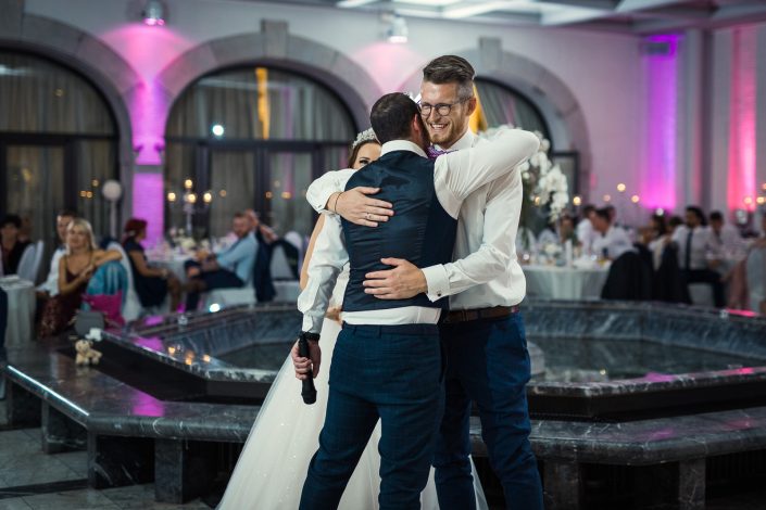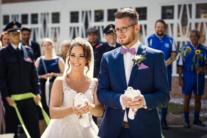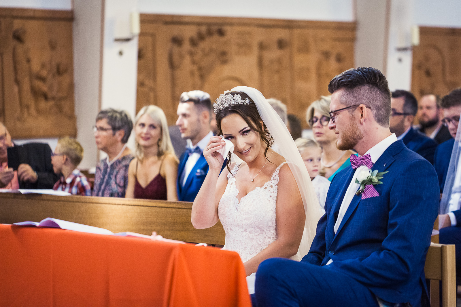 Geheiratet wurde in der Kirche Sankt Lambertus in Hückelhoven, die liebevoll mit einem Luftballon-Spalier geschmückt war. Es war ein traumhafter Anblick für den Bräutigam, die Gäste und natürlich uns :), als die Braut durch dieses Spalier zog. Im Anschluss ging es für uns ins Schloss Rahe, wo das Shooting und die anschließende Feier stattfanden. Auch wenn das Gelände des Schlosses sehr gepflegt ist, findet man doch ein paar Ecken die ein bisschen wilder sind, die sich perfekt für ein Shooting anbieten. Wir lieben es natürliche Bilder zu machen und Momente einzufangen und daher sind uns Shooting-Location die nicht das perfekte Gelände bieten am liebsten. Die Party ging bis spät in die Nacht und brachte so einige Überraschung, wie z.B. den Auftritt von Mike Leon Grosch, mit sich. Es war eine perfekte Party mit vielen stimmungsvollen Moment.